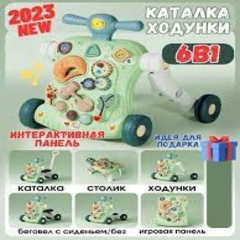 Многофункциональный игровой центр ходунки 6 в 1 - мечта не только малышей, но и родителей. Ходунки детские - каталка с бизибордом для малышей, которые только встают на ноги и делают первые шаги, станут надежной опорой и незаменимым помощником. Бизиборд развивающий трансформируется в столик детский. Ходунки детские имеют прорезиненные колеса и удобные нескользящие ручки, которые регулируются по высоте. Развивающий игровой центр легко снимается с основания и с помощью специальных креплений может устанавливаться на бортик кроватки или трансформироваться в игровой столик. Бортики с надежным креплением защитят ребенка от падения. Есть специальный резервуар, который заполняется водой для увеличения баланса и стабильности ходунков. Регулирующийся руль удобной формы позволяет установить высоту под рост ребенка. Ходунки оснащены блокиратором движения. У них универсальный размер, подходящий детям в возрасте от одного года. Ходунки легко трансформируются в самокат, который отлично тренирует равновесие и координацию. При помощи сиденья с комфортной сидушкой самокат в свою очередь превращается в пушкар для веселого времяпровождения. Эти многофункциональные ходунки - современное удобное решение для всех родителей, которые заботятся о том, чтобы их маленькие дети приобретали новые навыки и с интересом познавали окружающий мир. Ходунки и функцией блокировки станут практичной опорой для вашего мальчика или девочки во время ходьбы. Это целый игровой центр. Когда ребенок немного подрастет, ходунки можно переделать в самокат и пушкар для катания.